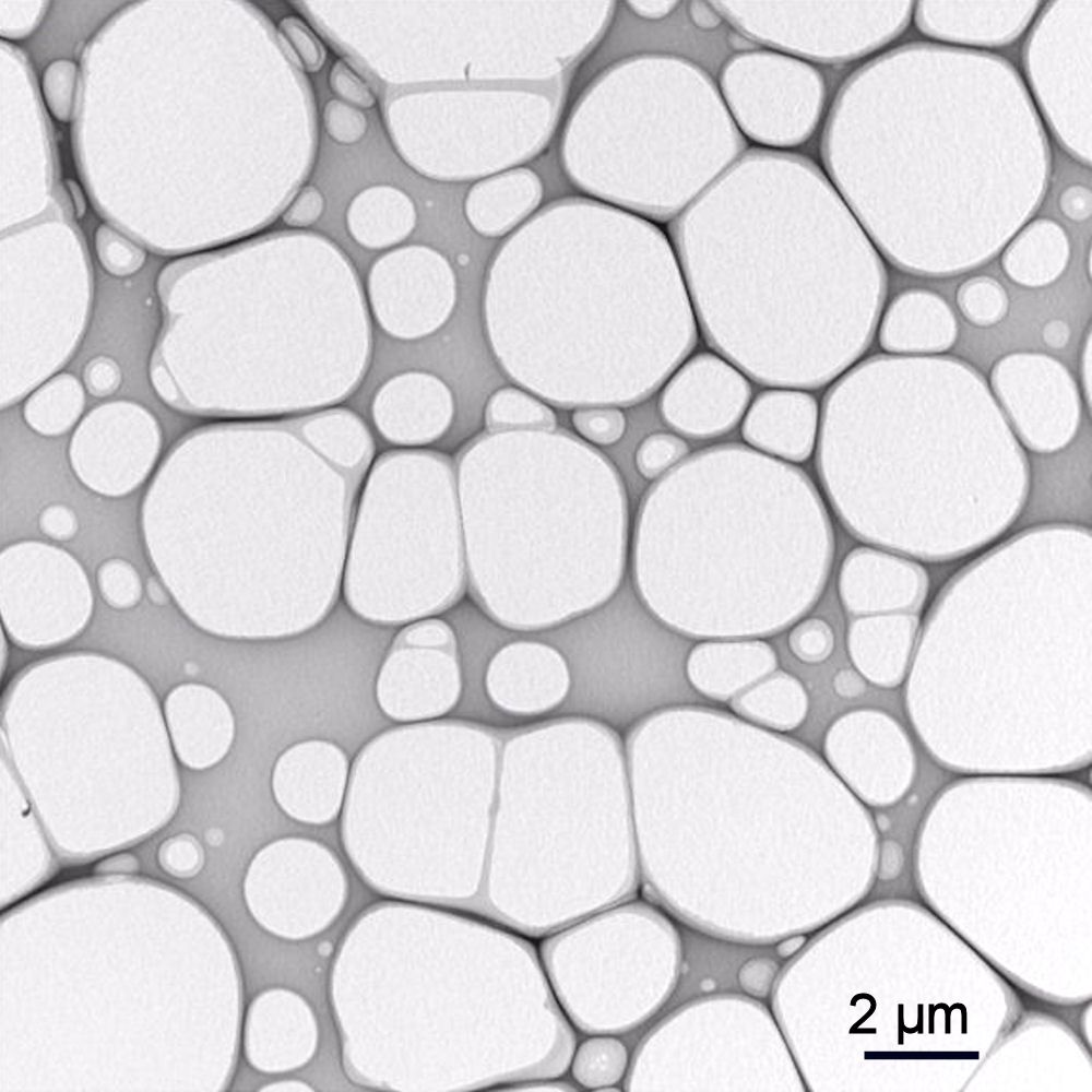また、マイクログリッドを利用できる形状を持つ試料であれば支持膜の貼られていない孔の部分(密度=0)で試料の観察が可能です。その意味でマイクログリッドは理想的な試料支持膜と言えます。