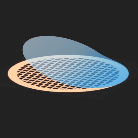 ⑪Λ型_1段_45°タイプ:グリッド全体の板厚が均一です。試料支持部が振動を受けにくいΛ型形状(頂角45度)となっています。