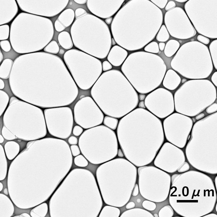 ・孔径は0.5~10μm程度ですが、同じグリッド内で孔径のばらつきが大きいです。