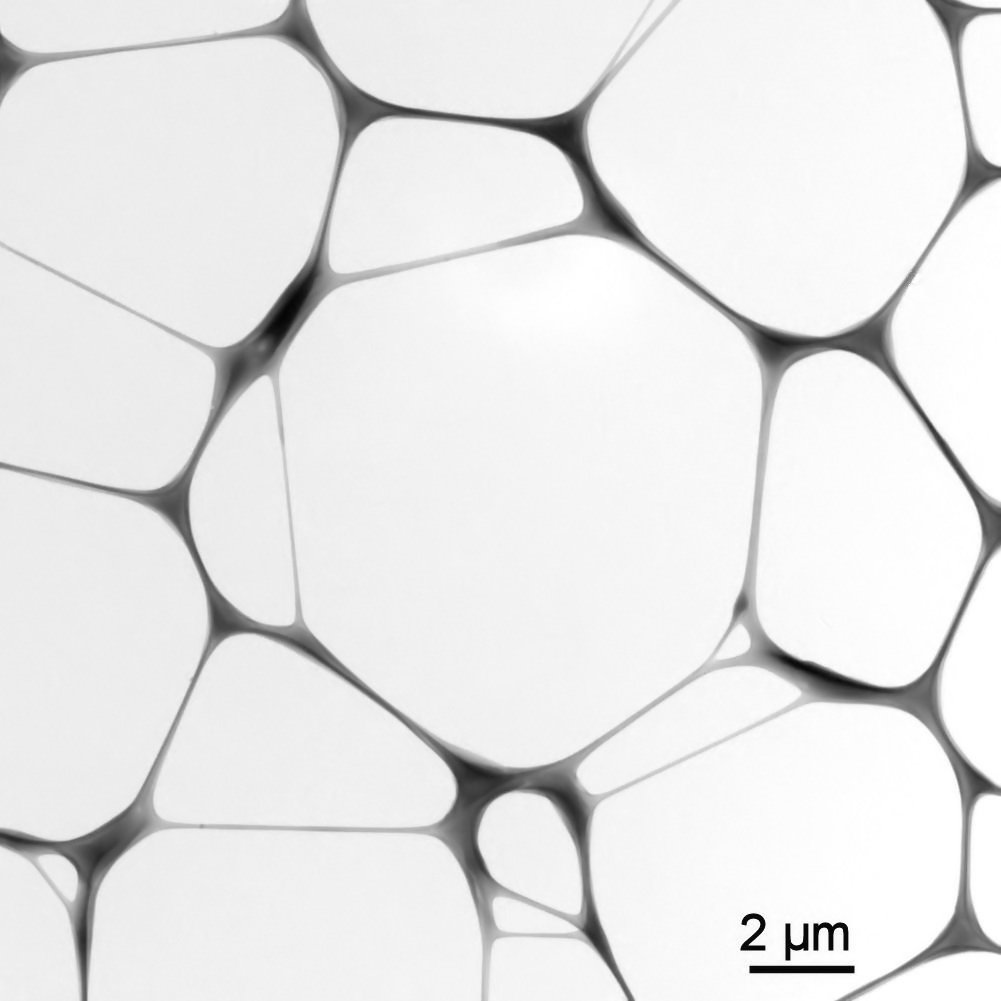 ・孔径は1~8μm程度で、同じグリッド内の孔径はやや不揃いです。